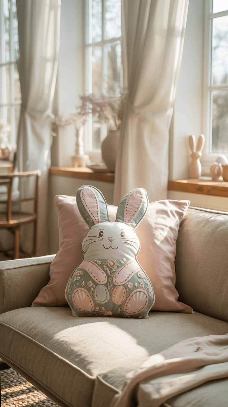 Wähle einen Stoff in zarten Pastelltönen und kombiniere ihn mit einer Füllung, die sich angenehm anschmiegt. Nähe die Ohren separat an und setze kleine Details wie aufgestickte Augen oder eine dezente Knopfnase.