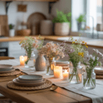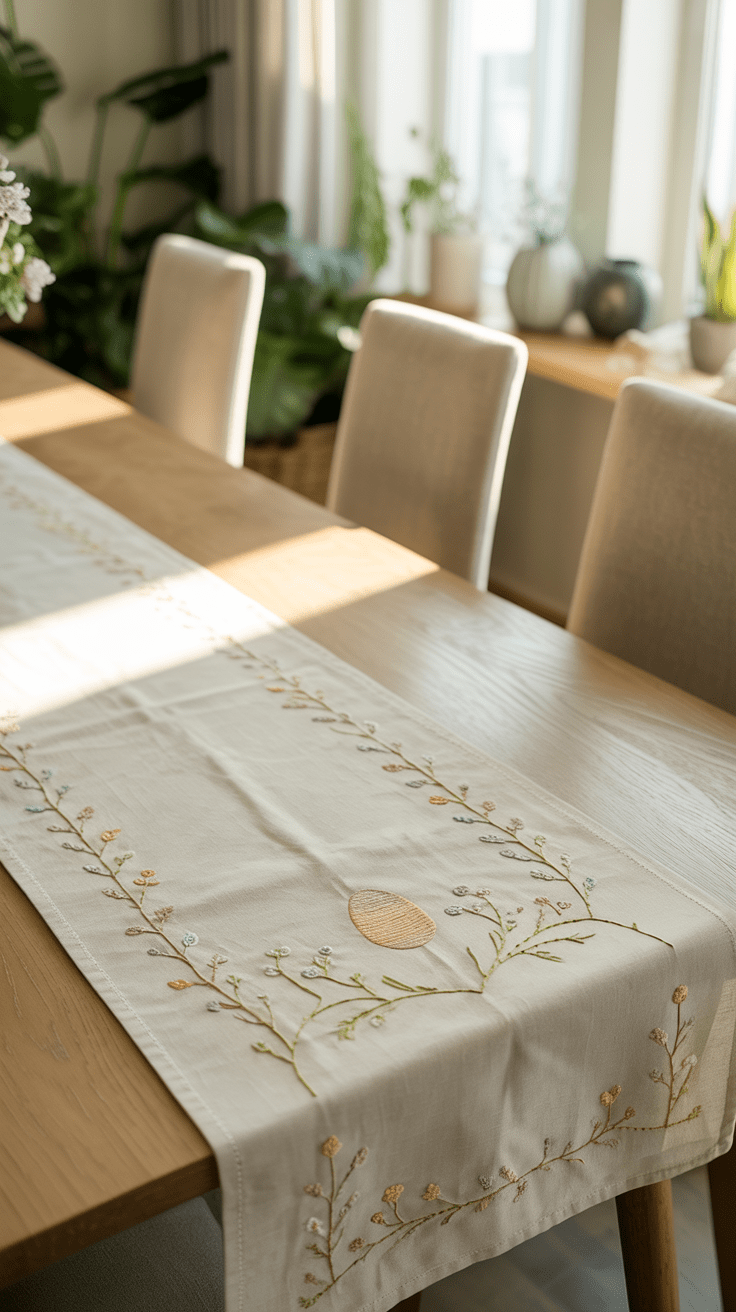 Ein feiner Tischläufer mit zarten Bestickungen verbreitet stille Eleganz im Esszimmer. Wähle einen naturfarbenen Leinenstoff als Basis und nutze Stickgarn in Pastelltönen, um Hasen, Eier und Frühlingsblüten zu skizzieren. Die ruhigen Linienführung beim Sticken wirkt meditativ.