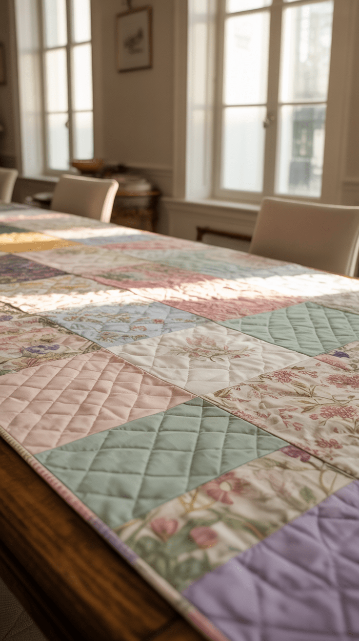 Patchwork erzeugt Tiefe und bringt verschiedenste Stoffqualitäten zusammen. Das Ergebnis ist eine lebendige, dennoch harmonische Fläche, die jeden Esstisch in ein frühlingshaftes Arrangement verwandelt.