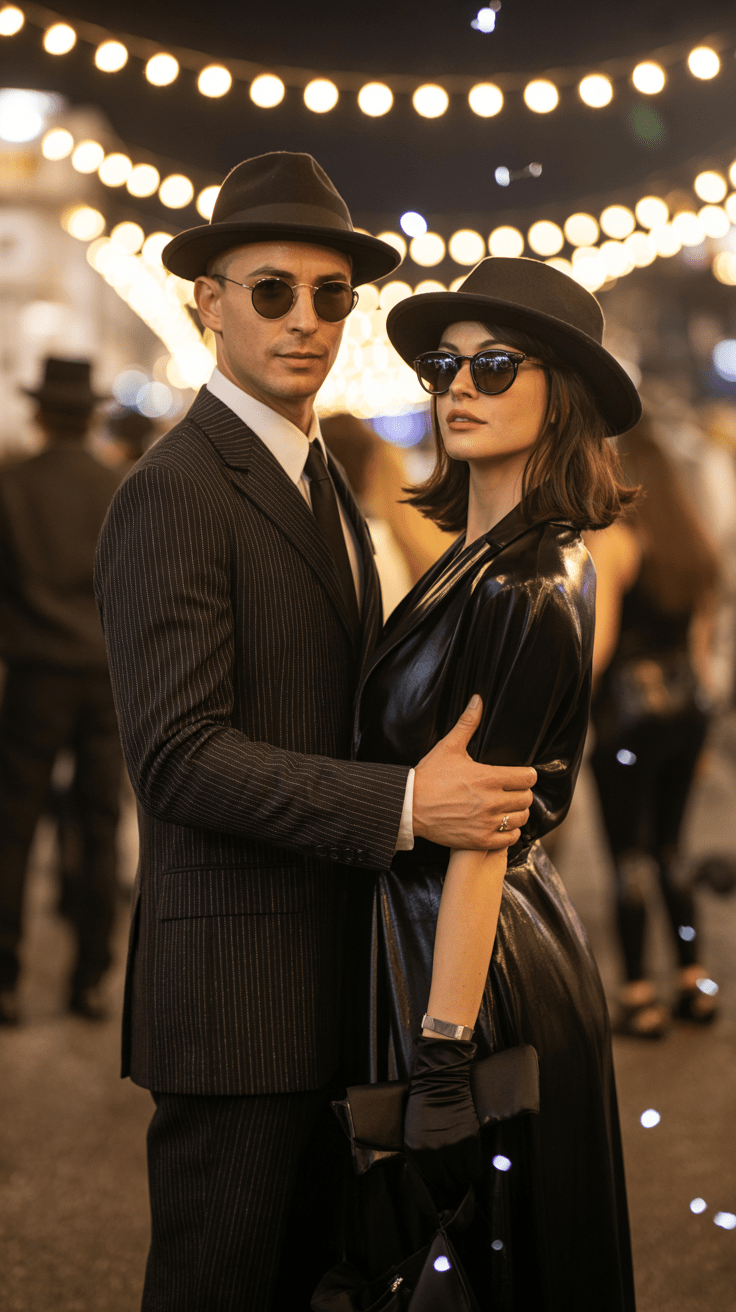 Das Mafia Partnerkostüm wirkt selbstbewusst, ruhig und sehr erwachsen. Es lebt nicht von Details, sondern von Haltung. Schwarze Kleidung, ernste Blicke und ein abgestimmter Auftritt reichen völlig aus, um Wirkung zu erzielen.