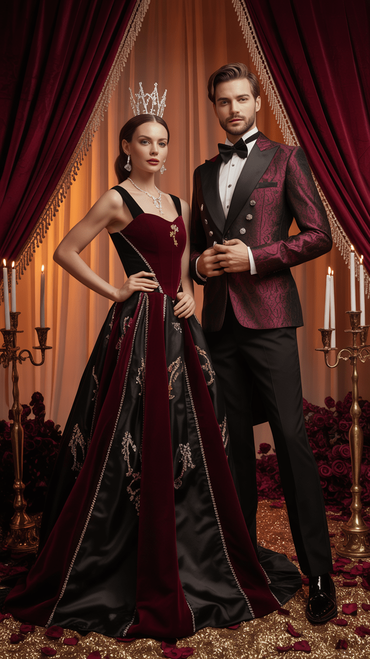 Ideal für Paare, die es schlicht mögen und trotzdem stilvoll auftreten möchten. Perfekt für lange Abende, Umzüge oder elegante Karnevalsfeiern.