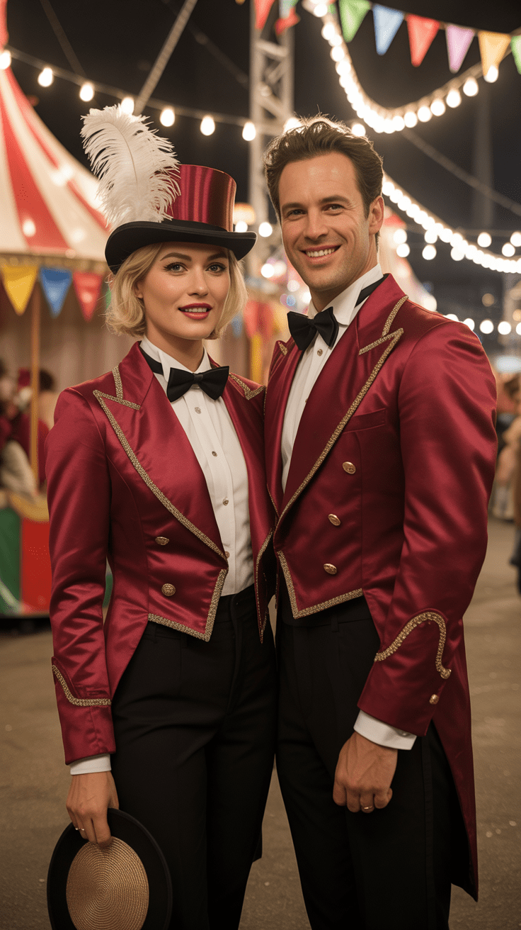 Dieses Partnerkostüm greift das Zirkus Thema auf, ohne verspielt zu wirken. Ihr setzt auf Rollen, Farben und Accessoires statt auf Clownskostüme. Das Ergebnis ist stilvoll und erwachsen.