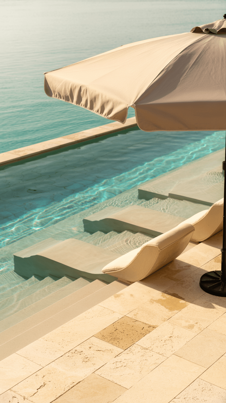 - Flacher Einstieg, breite Treppen oder integrierte Kinderzone
