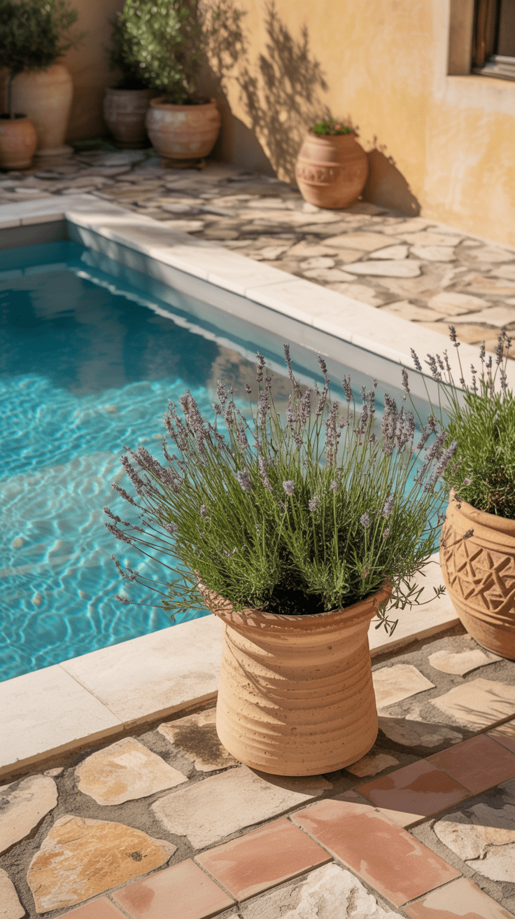 Ideal für mediterran gestaltete Gärten. Auch ein kleiner Pool wirkt mit Naturstein sofort hochwertig und harmonisch.