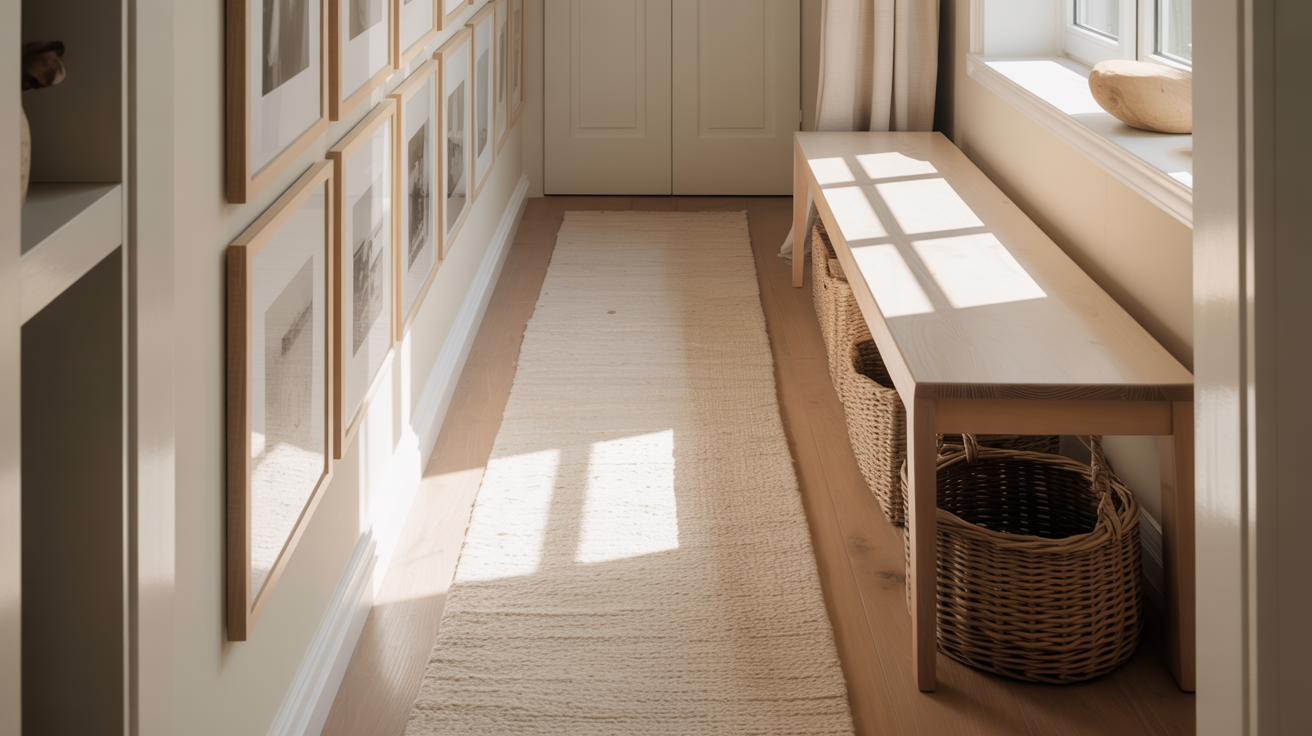 Besonders in langen Fluren ist ein Läufer ein echter Hingucker. Wähle helle, natürliche Töne oder sanfte Muster, die Ruhe ausstrahlen.