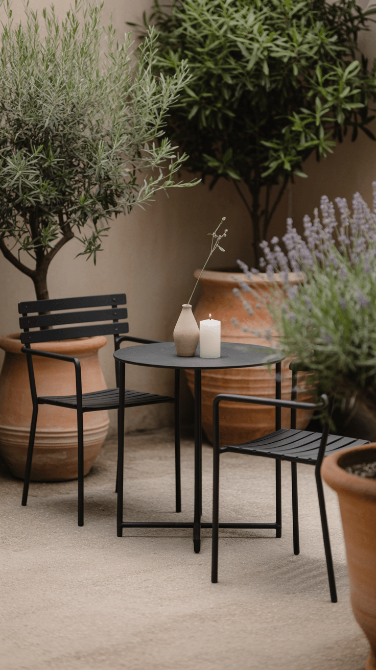 • Große Pflanztöpfe, wenig Deko, viel Luft.
