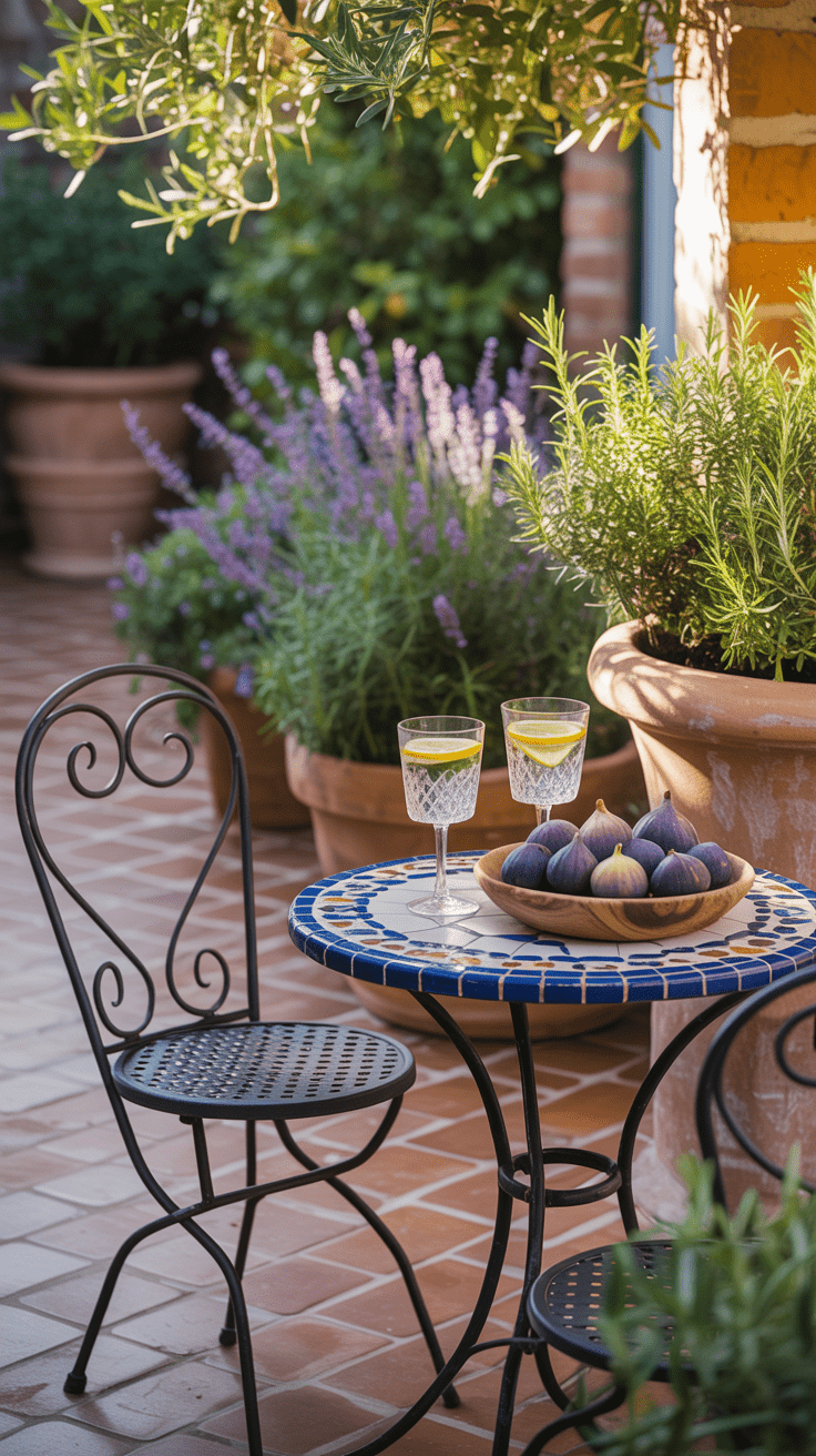 Ein Stück Italien im eigenen Garten – mit Terrakotta-Töpfen, Lavendelduft und bunten Fliesen. Der mediterrane Patio bringt Urlaubsstimmung und warme Farben in deinen Außenbereich. Besonders schön wirkt die Sitzecke, wenn sie eingerahmt ist von Kräutern, Olivenbäumchen und flackernden Laternen.