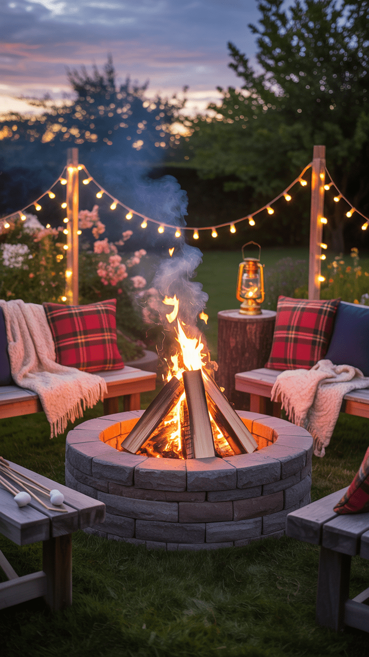 • Hocker, Bänke oder Holzscheite im Kreis drumherum.