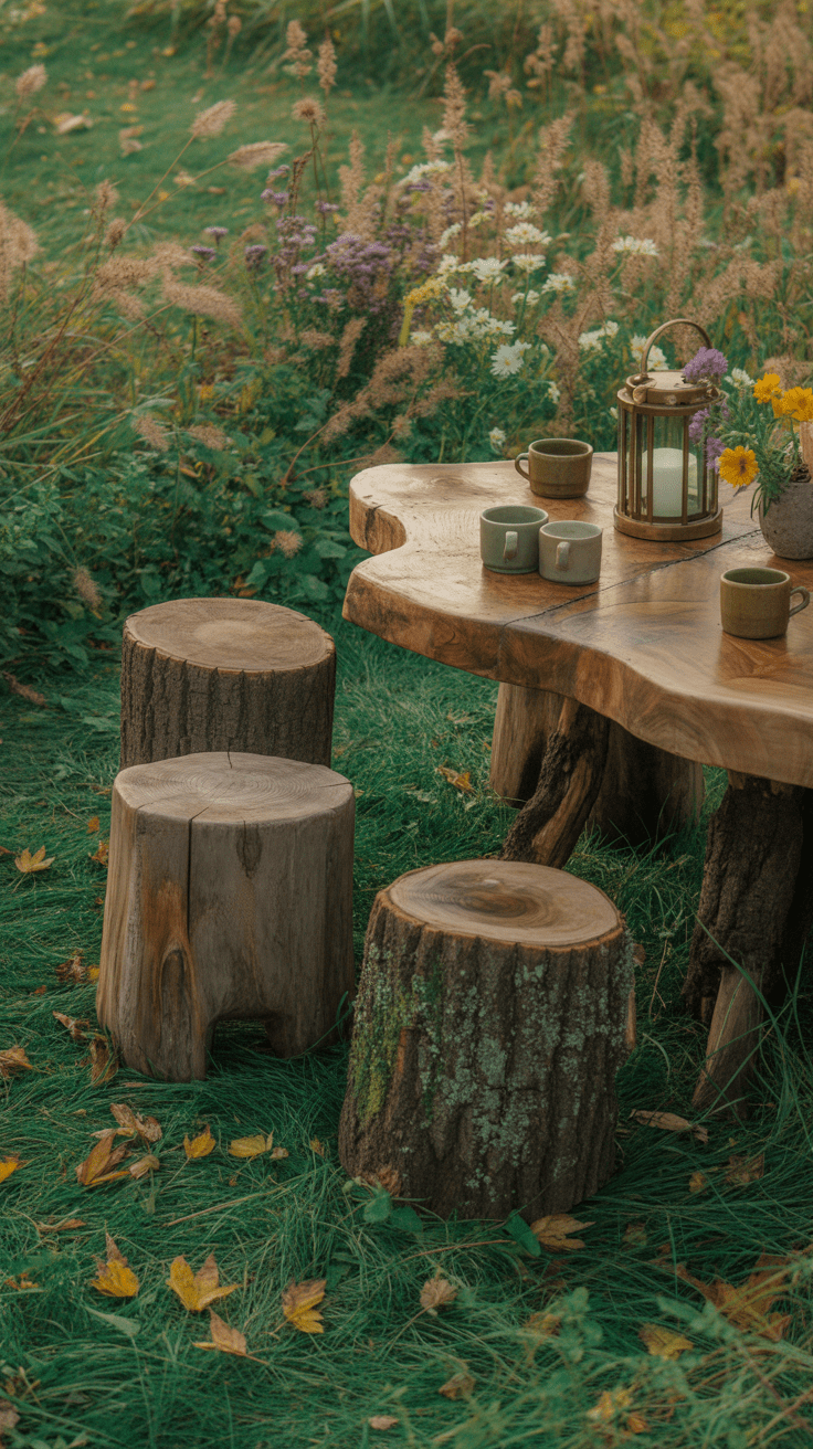8. Natürliche Sitzecke mit Baumstämmen
