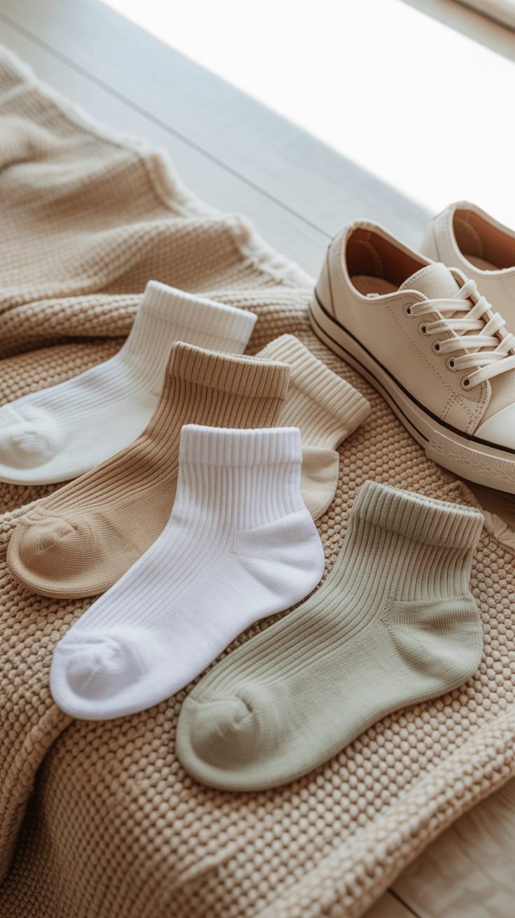 Sneaker-Socken enden direkt unter dem Knöchel. Sie sind praktisch im Alltag und bei Sport. Mit einem dezenten Lochmuster oder einer leichten Rippe bleiben sie formstabil.