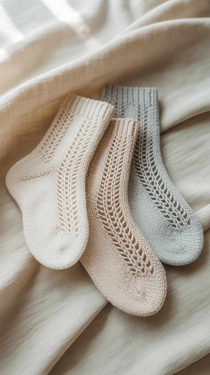 Feine Lace-Socken wirken luftig und elegant. Du strickst ein einfaches Lochmuster, das sich gut wiederholt. Solche Socken sind ideal für wärmere Tage oder als edles Geschenk.