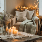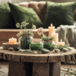 Die Kombination aus unterschiedlichen Formen und Materialien wie Glas, Metall oder Keramik sorgt für Spannung. Kerzen in beigen oder erdigen Tönen fügen sich harmonisch ins Gesamtbild ein. Gleichzeitig bleibt die Optik dezent und ruhig.