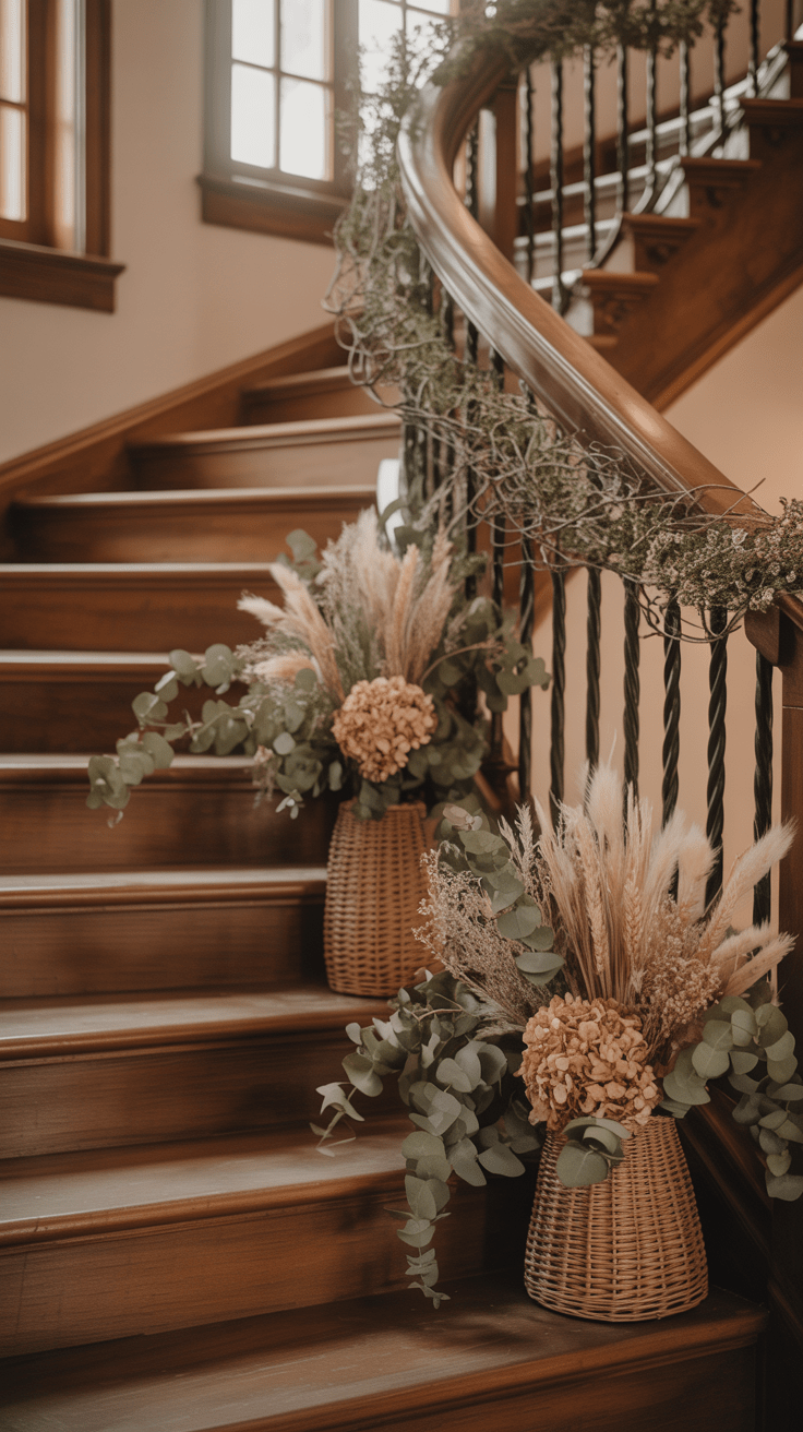 Mit wechselnden Deko-Arrangements passt du dein Treppenhaus ganz unkompliziert an Jahreszeiten oder Stimmungen an. Zarte Äste im Frühjahr, Beerenzweige im Herbst oder Tannenzapfen im Winter verleihen Farbe und Struktur. Jeder Wechsel schafft neue Eindrücke und lädt zum Entdecken ein.