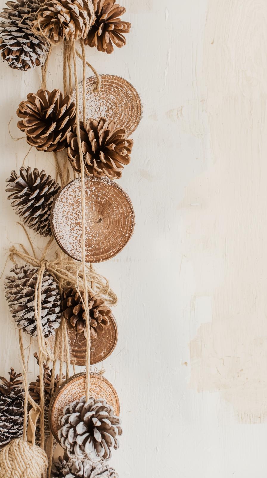 Girlanden bringen immer Bewegung in einen Raum. Diese Variante wirkt besonders natürlich und winterlich. Zapfen und kleine Holzstücke harmonieren gut und passen zu sanften Farben. Die Girlande eignet sich für Türen, Fenster oder offene Regale. Sie bringt Natur ins Haus.