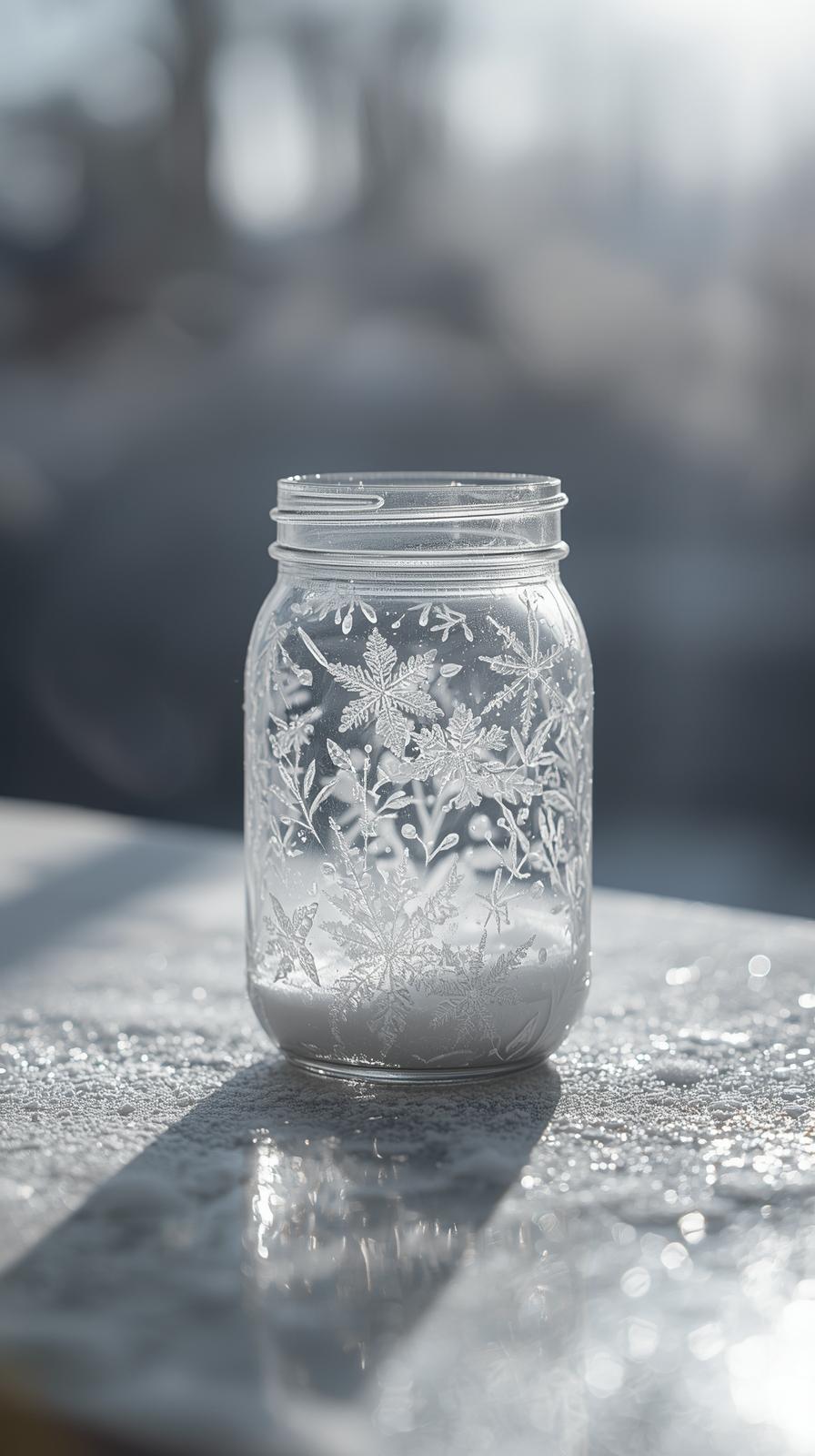 Frost Spray ist eine gute Lösung. Es zaubert einen feinen, kühlen Effekt auf Glas. Auch weiße Farbe oder Strukturpaste wirken frostig. Setze nur kleine Akzente, damit der Look natürlich bleibt.