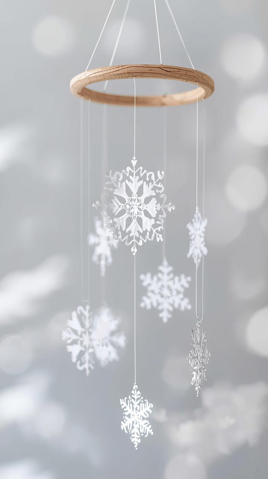 Ein Mobile bewegt sich sanft im Luftzug und bringt Leichtigkeit in dein Zuhause. Schneeflocken wirken filigran und zart. Die Farben Weiß und Silber passen perfekt zum Winter. Dieses Mobile hängt schön am Fenster oder in einer ruhigen Ecke.